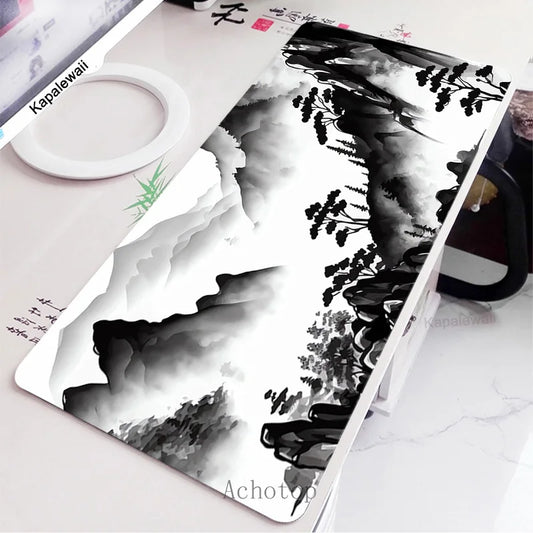 Black and White Laptop Gamer Mousepad Gaming Mouse Pad Ink and Wash Large Rug Locking Edge Keyboard 100X50Cm Desk Mat for CSGO